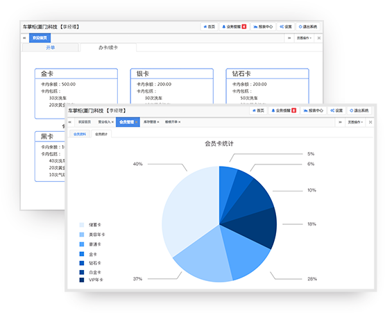 功能齊全:美容、機(jī)修開(kāi)單,會(huì)員辦卡,進(jìn)銷(xiāo)存管理